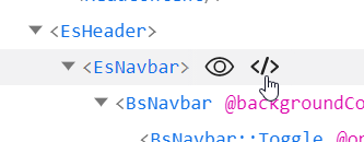 Clicking the 'markup tag' icon to the right of a component will scroll that component into view in the browser.